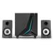 Reproduktory v konfigurácii 2.1 ponúkajú nielen dokonalý zvukový výstup vďaka celkovému výkonu 70 W , ale aj oživenie priestoru vďaka štýlovému RGB podsvieteniu subwoofera. Hudbu je možné prehrávať ako klasicky drôtovo, tak aj bezdrôtovo pomocou technológie Bluetooth 5.3 . Využiť možno tiež prítomný USB port .