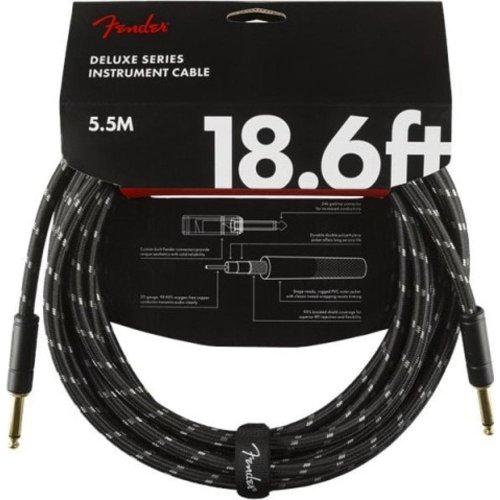 Profesionálny nástrojový kábel s jedným rovným a jedným lomeným jack konektorom. Disponuje vysoko kvalitnými komponentmi, pleteným tienením, vysokou odolnosťou a vodivosťou. Kábel je vybavený špeciálne tvarovanými koncami s odľahčenou tkaninou pod krytom konektora. Konektory sú pozlátené 24K, vďaka čomu zachovávajú tón bez straty kvality. Kvalitné tienenie zaručuje maximálnu čistotu signálu. Kábel je chránený robustnou tvídovou tkaninou, ktorá poskytuje dokonalú ochranu pred poškodením. Názov modelu: Deluxe Series Instrument Cable, Straight/Angle, 18.6', Black Tweed Dĺžka: 5,5 m Séria: Deluxe Series Krajina pôvodu: CN Farba: Black Tweed