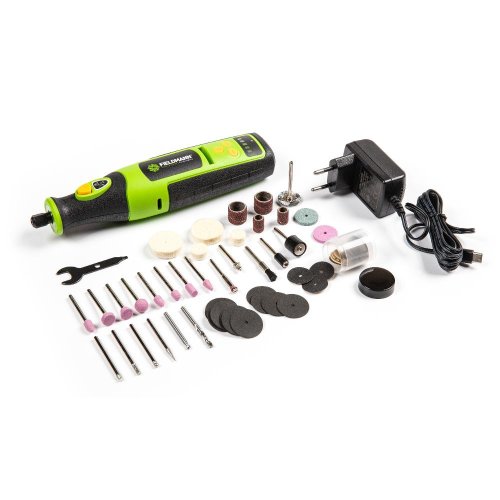 Skvele prepracovaná modelárska brúska overenej značky FIELDMANN je všestranný univerzálny nástroj pre domácich majstrov, drobných remeselníkov i hobby nadšencov. Jedná sa o mini priamu brúsku s reguláciou otáčok. O dostatočný výkon sa postará Li-Ion 7,2 V / 1,3 Ah akumulátor. Otáčky je možné regulovať v rozmedzí 5 000 – 25 000 otáčok za minútu. Je vhodná na opracovanie ako mäkkých, tak aj tvrdých materiálov. Skvele sa drží a ľahko aj rýchlo v nej vymeníte pracovné nadstavce. Oproti klasickým brúskam odpadá nutnosť nosenia kábla a je možnosť pracovať aj v priestore, kde nie je prístup k el. sieti. Samozrejmosťou je 70 kusov príslušenstva zadarmo. To všetko doplnené o ergonomické madlo s mäkčenou rukoväťou.