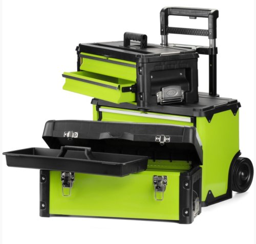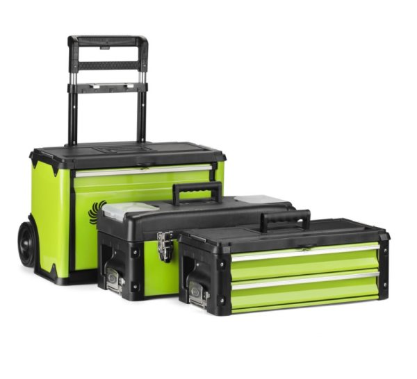 Technické parametre: Materiál: Kov Kolieska: z tvrdeného plastu Rozmery: 520 × 320 × 721 mm Váha: 15kg Počet samosatatných box dielov: 3 Teleskopické madlo pre ľahký prevoz: áno Vyklápacie madlá: áno (na každom boxe)