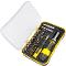 Skrutkovač veľký s račňou a úložným priestorom na bity v rukoväti Nadstavec 60 mm na predĺženie dosahu 31 ks bitov 6 mm Malý skrutkovač s točnou na ukazovák Nadstavec 60 mm 20 ks mini bitov 4 mm 9 ks orieškov s redukciou