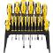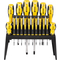 8 ks skrutkovačov plochých a krížových v CR-V kvalite 10 ks malých skrutkovačov s točnou na ukazovák Držiak upevniteľný na stenu či nástennú dosku