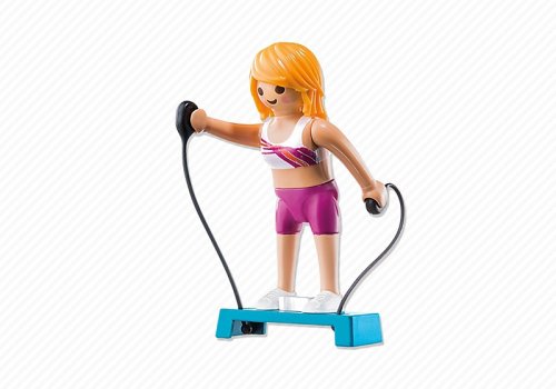 Figúrka Trénerka fitness s príslušenstvom z radu Playmobil. Tréning sa zameriava na step aerobic.