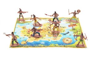 Ak majú Vaše deti dobrodružnú povahu a radi sa hrajú na indiánov, tak práve pre nich je táto sada. Sada obsahuje mapu a indiánov. Postavičky majú podstavec. Rozmery balenia 15 x 18 x 3 cm. Vhodné pre deti od 3 rokov.