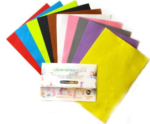 Filc alebo plsť je netkaná textília, ktorú môžete použiť na strihanie, lepenie, šitie, vyšívanie. Môžete z neho s deťmi vyrábať priania, záložky, vankúšiky, figúrky, bábky, ozdoby či šperky, polepovať krabičky a ďalej ho zdobiť rôznymi kamienkami či motívmi. Tvorte čo vás napadne! Filc - 10 ks mix farieb, formát A4, 180g