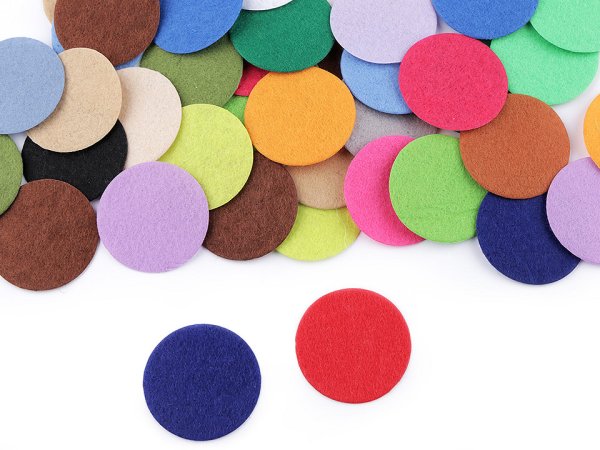 Mix farebných koliesok z filcu/plsti sa hodí na prišitie aj nalepenie. Využijete ich v mnohých výtvarných technikách, skvele sa hodí na tvorenie s deťmi. Vďaka prilepeniu suchého zipsu sa môže stať zaujímavou didaktickou pomôckou. Tento materiál je syntetická (polyesterová) plsť, nejedná sa o prírodný materiál.