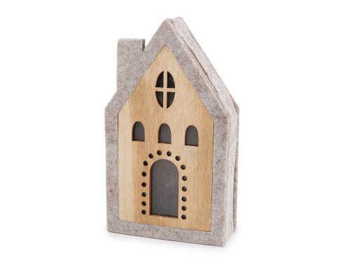 Svietiaci domček je vyrobený z kombinácie dreva a pevného filcu. Svieti príjemným teplým svetlom, ktoré vyzerá ako hviezdička. Dodá hrejivú a pokojnú atmosféru do každého interiéru. Batérie (2x CR2032) sú súčasťou balenia.