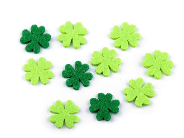 Štvorlístok z filcu/plsti sa hodí na prišitie aj nalepenie. Štvorlístok pre šťastie sa hodí na dozdobenie svadieb, osláv a pod. Skvele ho využijete na tvorenie s deťmi. Tento materiál je syntetická (polyesterová) plsť, nejedná sa o prírodný materiál.