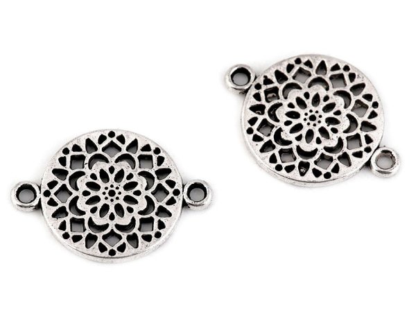 Ozdobný diel rôznych dizajnov má dve očká, ktoré slúžia na prichytenie. Varianty č. 1 - 3 sú ľahko vypuklé a jednostranné. Varianty č. 4 - 5 je možné použiť aj obojstranne. Rozmery č.1 - srdce - 14 x 19 mm. Rozmery č.2 - ornamenty - 14 x 20 mm. Rozmery č.3 - motýľ - 20 x 14 mm. Rozmery č.4 - strom - 13 x 23 mm. Rozmery č.5 - mandala - 20 x 14 mm. Rozmery č.6 - mandala - 13 x 18 mm. Rozmery č.7 - mandala - 13 x 20 mm. Rozmery č.8 - strom - 13 x 19 mm. [Rozmery č.9 - strom - 11 x 15 mm.] [Rozmery č.10 - strom - 13 x 17 mm.] [Rozmery č.11 - kvet - 15 x 20 mm.] [Rozmery č.12 - srdce - 12 x 21 mm.] [Rozmery č.13 - kvet života - 15 x 21 mm.]