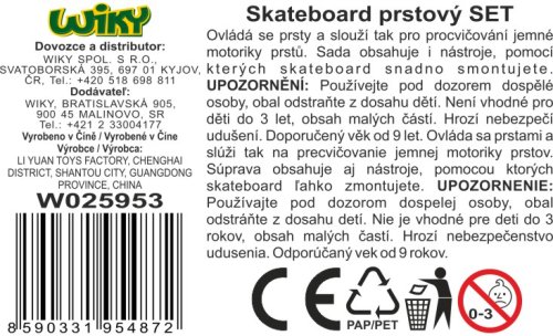 Fingerboard sada s náhradnými dielmi. Dĺžka dosky 9,5 cm. Obsah balenia - 1xkompletný fingerboard, 2 náhradné trucky, 8 náhradných skrutiek, náhradné doska, náhradné grip tape, sada skrutkovačov na montáž. Viac variantov.