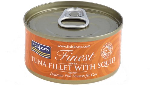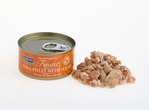 Mačky zbožňujú ryby! Doprajte im konzervu Fish4Cats® Finest s obsahom tuniaka s kalmárom. Je to zdravé a chutné jedlo, bohaté na omega 3 mastné kyseliny, a obsahuje ľahko stráviteľné bielkoviny. Vďaka veľmi vysokému obsahu rýb poskytuje toto krmivo pre mačky prirodzenú a zdravú stravu. Zloženie: tuniak 65%, rybí vývar 26%, kalmáre 5%, ryža 4% Analytické zložky: Hrubý proteín 12%, Hrubý tuk 0,1%, Hrubá vláknina 1%, Hrubý popol 2%, Vlhkosť 84,5%.
