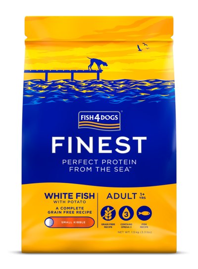 FISH4DOGS Granule malé pre dospelých psov Finest biela ryba so zemiakmi 1,5 kg, 1+
