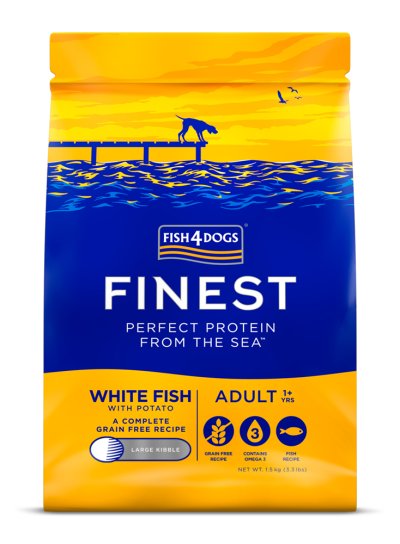 FISH4DOGS Granule veľké pre dospelých psov Finest biela ryba so zemiakmi 1,5 kg, 1+