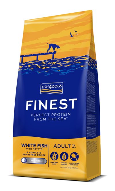 Granule pre dospelé psy s obsahom rýb a zemiakmi sú vyrobené zo sezónnych druhov bielych rýb ulovených v bohatých loviskách severného Atlantiku. Vyvážené suché krmivo bez obsahu obilnín obsahuje omega 3 mastné kyseliny. Granule pomáhajú s trávením a podporujú celkové zdravie čriev.