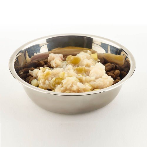 Zloženie: biela ryba (50 %), zelená fazuľa (8 %), sladké zemiaky (8 %), tapiokový škrob Analytické zložky Hrubý proteín 8,5 %, vláknina 0,5 %, obsah tuku 0,2 %, popol 1, 8%, vlhkosť 89%