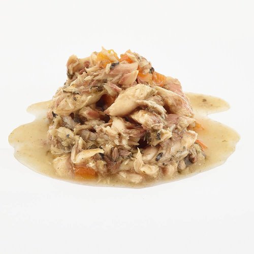 Zloženie: makrela (50%), špenát (8%), mrkva (8%), tapiokový škrob Analytické zložky: Hrubý proteín 8,5%, vláknina 0,8%, obsah tuku 1%, popol 1,7%, vlhkosť 88%