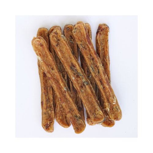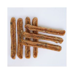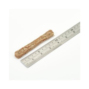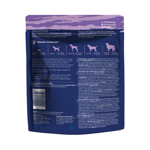 Zloženie: Losos (90 %), rybia koža (4 %), rastlinný proteín, škrob, glycerín Analytické zložky: Hrubý proteín 40 %, Hrubá vláknina 0,7 %, Obsah tuku 4 %, Hrubý popol 2,7 %"
