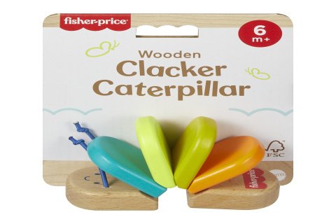 S touto drevenou hračkou od Fisher-Price® si dieťatko môže zahrať zaujímavú zmyslovú hru. Farebná hrkálka s motívom húsenice, ktorej veľkosť je tak akurát, aby ho mohli uchopiť malé ručičky, vydáva pri trasení príjemné klapajúce zvuky. Hračka je vyrobená z dreva z dobre obhospodarovaných zdrojov s certifikátom Forest Stewardship Council (FSC C004225) a pomáha posilňovať jemnú motoriku dieťaťa.