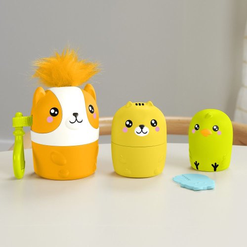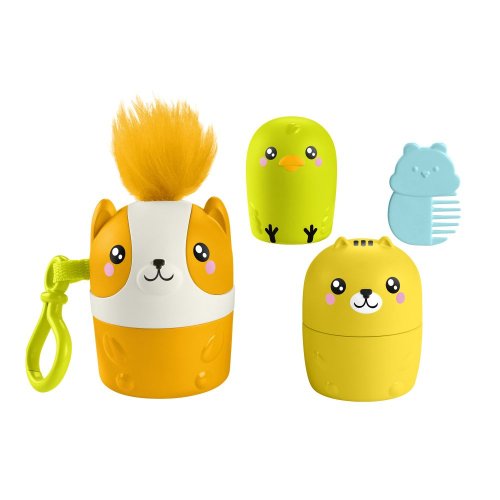 Rodičia detí v predškolskom veku si zamilujú starostlivosť o tieto rozkošné hniezdiace zvieratká od Fisher-Price®! Táto hračka obsahuje od veľkého po malého korgiho, mačku, vtáčika a škrečka. Tri väčšie zvieratká majú rôzne uzávery, zatiaľ čo škrečok funguje ako hrebeň, ktorým môže dieťa „česať“ srsť corgiho, čo pomáha posilňovať jeho zručnosť.