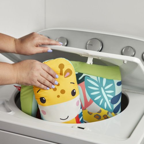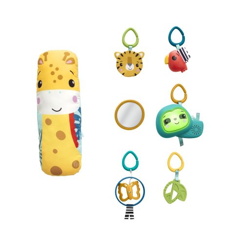 Fisher-Price® Hracia dečka so žirafou 3 v 1 rastie spolu s vašim dieťatkom od novorodenca až po batoľa, a po celú dobu ponúka deťom zmyslové zážitky. Novorodenci môžu ležať na mäkkej hracej podložke a nad nimi je na oblúkoch zavesených 6 hračiek, ktoré stimulujú ich zmysly. Pri hre na brušku je možné nastaviteľný oblúk posunúť dole, aby boli hračky v dosahu, zatiaľ čo vankúšik v tvare žirafy pomáha dieťa pri hre podopierať. Hračka leňocha s hudbou a svetlami navyše zaistí, že hranie bude stále zábavné, až vaše dieťatko prejde z chvíľ na brušku do sedenia a hranie sa na cestách.