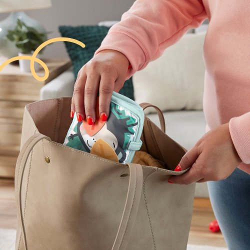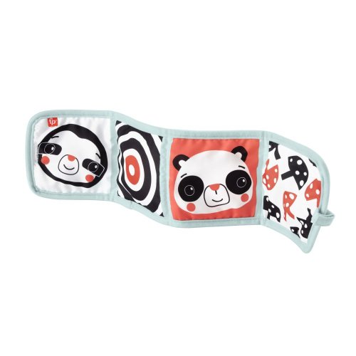 S Mäkkým leporelom so zvieratkami z džungle od Fisher-Price® sa dieťatko môže dotýkať rôznych textúr, hrkať, obracať, skúmať svoju tvár v zrkadle a objavovať. 4 obojstranné panely tejto mäkkej knižky s farebnými a vysoko kontrastnými vzormi pomáhajú pri najskoršom vývoji zraku dieťaťa. Leporelo má pútka na suchý zips na pripevnenie napr. k hrazdičkám.