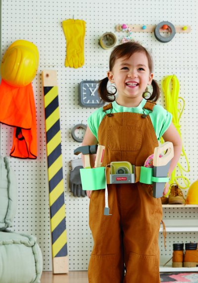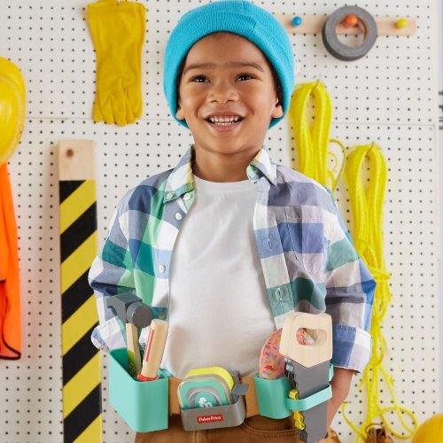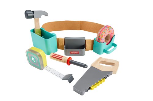 Váš malý staviteľ bude mať po dome dômyselné "opravovanie" vecí so sadou rolí na náradie Fisher-Price® DIY Tool Belt.