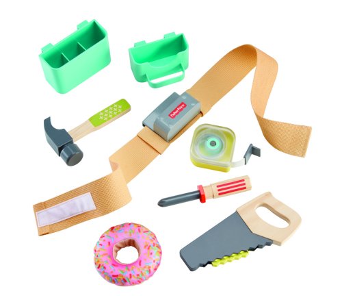 Váš malý staviteľ bude mať po dome dômyselné "opravovanie" vecí so sadou rolí na náradie Fisher-Price® DIY Tool Belt. Textilný opasok na náradie má pohodlné úložné otvory pre všetky ich nástroje, vrátane předstíracího kladivá, skrutkovača, chladné píly, ktorá vydáva zvuky pri "rezanie", a skutočne fungujúci, zaťahovací meracie pásky. Dodáva sa dokonca s látkovým šišiek, ktorý odmení vášho predškoláka za dobre odvedenú prácu. Či už si hráte v garáži alebo pracujete na projekte zlepšenie domácnosti, váš obľúbený asistent bude po vašom boku s vlastnými skvelými nástrojmi!