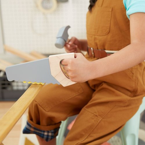 1. Ujistěte se, že hračka je vhodná pro věk dítěte, abyste předešli riziku nevhodného použití a potenciálního zranění. 2. Pravidelně kontrolujte nástroje z hlediska poškození, ostrých hran nebo volných prvků, které by mohly představovat nebezpečí. 3. Dohlížejte na dítě při hře s nářadím a učte ho správnému a bezpečnému používání. 4. Uchovávejte nástroje mimo dosah mladších dětí, aby se zabránilo neoprávněnému přístupu. 5. Vyhněte se používání nářadí v blízkosti vody nebo ve vlhkých podmínkách, zejména pokud hračka obsahuje elektrické prvky. 6. Používejte pouze nástroje určené pro konkrétní hračku podle pokynů výrobce. 7. Nedovolte dítěti používat nástroje agresivním nebo nevhodným způsobem, aby nedošlo k poškození nebo zranění. 8. Ujistěte se, že dítě nosí vhodné osobní ochranné prostředky, jako jsou ochranné brýle, aby chránilo oči před odlupováním. 9. V případě nářadí napájeného bateriemi používejte pouze baterie vhodného typu a ujistěte se, že jsou správně nainstalovány. 10. Pravidelně kontrolujte stav baterie a vyměňujte je, když jsou opotřebované, abyste zabránili úniku a korozi. 11. Nemíchejte staré a nové baterie a různé typy baterií, abyste zabránili poškození hračky. 12. Vyhazujte použité baterie vhodným způsobem v souladu s místními předpisy o recyklaci. 13. Naučte dítě, jak pečovat o nástroje, aby mohly sloužit po dlouhou dobu a byly bezpečné při používání. 14. Vyhněte se úpravám nástrojů nebo přidávání prvků, které nejsou určeny pro daný model. 15. Pravidelně čistěte nástroje, abyste odstranili nečistoty, prach a další nečistoty, které mohou mít vliv na jejich fungování. 16. V případě malířských nástrojů používejte pouze barvy a laky bezpečné pro děti, netoxické a s atesty. 17. Ujistěte se, že jsou barvy a laky skladovány v vzduchotěsných nádobách a mimo dosah dětí. 18. Naučte dítě, jak správně nanášet barvy a laky, aby se zabránilo vdechování výparů a kontaktu s pokožkou. 19. V případě řezacích nástrojů se ujistěte, že je dítě používá pod přísným dohledem dospělé osoby a pouze za vhodných podmínek. 20. Naučte dítě, jak správně držet a používat řezací nástroje, abyste se vyhnuli poraněním a jiným zraněním. 21. V případě nástrojů, které generují teplo, se ujistěte, že se dítě nedotýká horkých povrchů a nezanechává je bez dozoru. 22. Naučte dítě, jak postupovat v případě požáru nebo jiných nouzových situací spojených s používáním nástrojů. 23. Ujistěte se, že dítě rozumí pravidlům bezpečnosti a dokáže je uplatňovat v praxi. 24. Pravidelně připomínejte dítěti pravidla bezpečnosti a ujistěte se, že si je pamatuje. 25. Buďte vzorem a vždy dodržujte bezpečnostní pravidla při hraní s dítětem.
