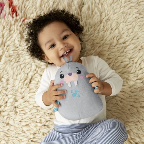 Fisher-Price® Plyšový mrož s melódiami je super mazlící kamarát pre bábätká, ktorý dokáže 10 minút vydávať ukľudňujúce melódie, vibrácie a zvuky prírody. Táto roztomilá plyšová hračka s melódiami je vybavená 4 rôznymi nastaveniami, takže si uspávanie môžete nastaviť presne podľa potrieb vášho bábätka. Mrozik s mäkkými plutvičkami a látkovými "vlásky" možno prať v práčke a perfektne sa tiež hodí na cesty.