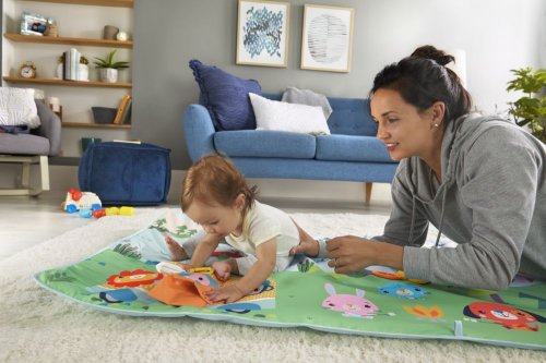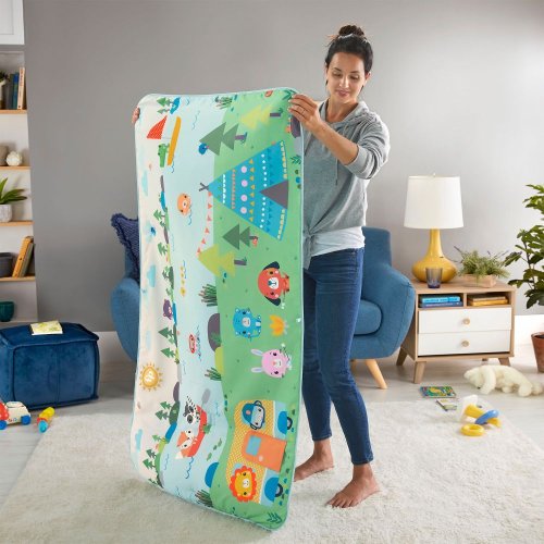 S hracou dečkou Extra Big Adventures ™ od Fisher-Price ® sa môžete zbaliť a vyraziť v ústrety vzrušujúcim "vonkajším" dobrodružstvom. Táto extra veľká podložka s motívom kempovania meria na dĺžku 152 cm, čo malým táborníkom poskytuje veľa priestoru na preskúmavanie táboriska a zapojenie sa do hry s hračkami, vrátane hrkálky s kompasom, vysoko kontrastného zrkadla, cinkátka a hryzátka s mráčikmi bez BPA. Podložka, ktorú je možné prať v práčke, sa ľahko zroluje, takže ju môžete vziať so sebou, kamkoľvek sa s dieťaťom vydáte! Veľký priestor na hranie a zábavné hračky pomáhajú udržať deti pri hraní na brušku a pomáhajú rozvíjať silu krku, stredu tela a jemnú motoriku.