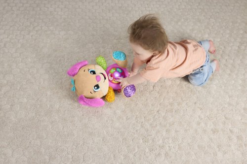 Hovoriaca psíková sestrička Smart Stages® z radu Fisher-Price® Smej sa a Poznávaj!® je príjemná plyšová hudobná hračka, ktorá zoznamuje dieťa s abecedou, tvarmi, prvými slovami a ďalšími prvkami! Deti môžu stlačiť 5 tlačidiel na brušku a sledovať, ako sa jej srdiečko rozsvecuje farbami, zatiaľ čo hrá viac ako 80 pesničiek, zvukov a fráz. Vďaka viac ako 12 originálnym pesničkám a 3 úrovniam učenia Smart Stages®, ktoré rastú spolu s dieťaťom od dojčaťa až po batoľa, sa Hovoriaca psíková sestrička stane najlepšou kamarátkou vášho dieťatka.