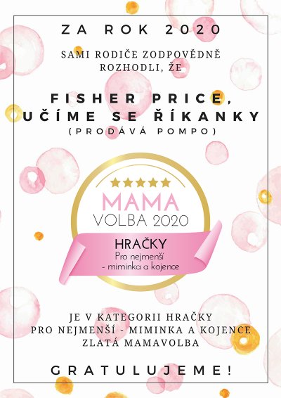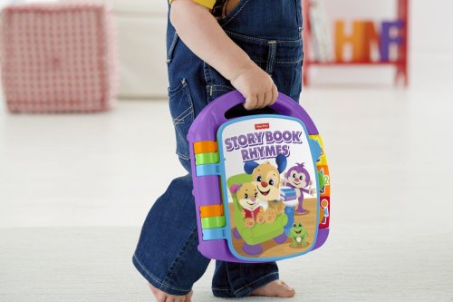 Otvorte svojmu dieťaťu svet zábavy a učenia s hrajúcou knižkou Učíme sa riekanky z radu Smej sa a Poznávaj! od Fisher-Price®! Jednoduchým otočením stránky spustíte obľúbené detské pesničky a zároveň si môžete prezerať farebné obrázky psíka a jeho sestričky. Zatiaľ čo vy s vašim malým tanečníkom dobývate parkiet v rytme skvelej hudby, on sa zároveň učí písmenká, počítanie, prvé slovíčka, čísla, tvary a ďalšie dôležité veci. Keď deti stlačia svietiace tlačidlá ABC a 123, počujú písmená a čísla zodpovedajúce príslušnej stránke. Vďaka tomu si čítanie zamilujú! Stlačením svietiaceho tlačidla „Tvary a farby“ deti spustia krátke vety, ktoré im pomôžu naučiť sa všetky rôzne farby a tvary. Stránky, ktoré sa ľahko otáčajú, pomôžu deťom rozvíjať jemnú motoriku.