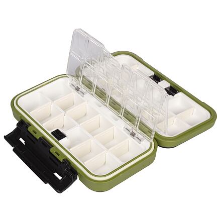 Krabička Merco Fishing Gear Box skvele poslúži každému rybárovi pre prehľadné a praktické uloženie drobnej rybárskej bižutérie, ktorú potrebuje mať stále po ruke, ako sú napríklad háčiky, olůvka, záťaže, náväzce, prevleky a pod. Krabička z odolného PP plastu je pevne uzatvorená a rozdelená na mnoho samostatných priehradok, ktoré je možné veľkostne prispôsobiť podľa potreby vďaka vyberateľným plastovým prepážkam. Priehradky v hornej aj spodnej časti krabičky sa uzatvárajú samostatne pružinovým mechanizmom priehľadnými vekami, takže obsah sa nevysype a máte o ňom dokonalý prehľad. Vďaka malému rozmeru krabičky ju ľahko uložíte a prenesiete. Parametre: - Celkový rozmer krabičky (dĺžka x šírka x výška): 16 x 9 x 5 cm. - Hmotnosť: 250 g. - Horná časť krabičky: 2 samostatne uzatvárateľné oddiely s až 10 priehradkami o rozmere 2 x 2,5 cm a 2 priehradkami o rozmere 2 x 1,5 cm, hĺbka 1 cm. - Spodná časť krabičky: 1 uzatvárateľný oddiel s až 10 priehradkami o rozmere 2 x 2,5 cm a 2 priehradkami v tvare L 2,5 x 2 x 1 cm, hĺbka 2 cm. - 9 x vyberateľná prepážka výška 2 cm, 6 x vyberateľná prepážka výška 1 cm. - Materiál: polypropylén. - Protišmyková úprava, vodeodolná, pevne uzatvárateľná.
