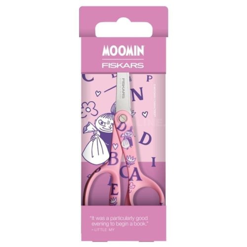 Obľúbené detské nožnice Fiskars Moomin Litle My ABC vyrobené z kvalitných materiálov s návrhmi podľa slávnych kníh Tove Janssonovej s Mumienkami. br Držadlá sú špeciálne navrhnuté tak, aby dobre padla do detskej ruky. br Čepele z nerezovej ocele s bezpečnými zaoblenými špičkami. br Nožnice majú nastaviteľný prítlak čepeľou. br Nožnice sú určené pre pravákov. br Vyrobené vo Fínsku. br