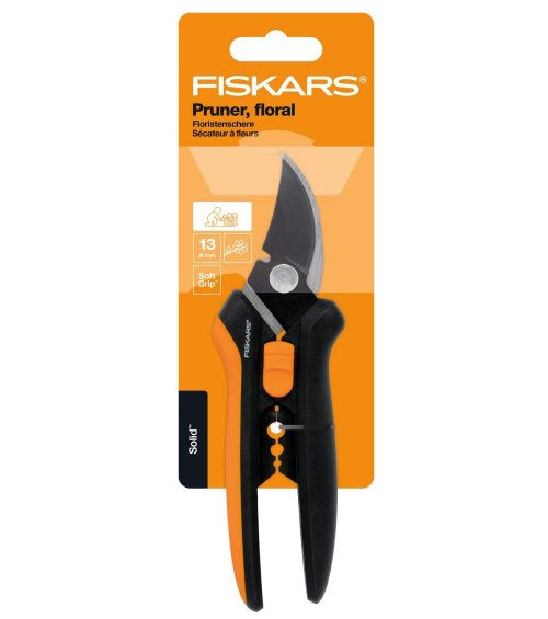 Nožnice určené na prestrihávanie kvetov Ideálne pre prácu s rezanými kvetmi Strihanie do priemeru 13mm Odolné čepele s nepriľnavým povrchom Držadlo s nekĺzavým povrchom SoftGrip Odstraňovač tŕňov a iných výhonov na stonkách a strihač drôtu