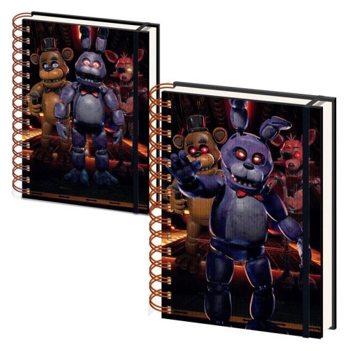 Krúžkový blok formátu A5 s 3D motívom Five Nights At Freddy's. Skvelý na poznámky, kreslenie alebo školské zápisky pre všetkých fanúšikov tejto populárnej hororovej hry.