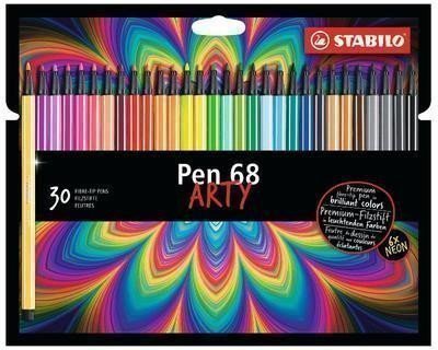 Stabilo Pen 68 ARTY - 30 farieb • Prémiová vláknová fixka s intenzívnym výdajom farby – pre silné línie a veľké plochy. • Sýte a žiarivé farby.• Tlaku odolný hrot M (šírka stopy cca 1 mm) pre rovnomerný výdaj …