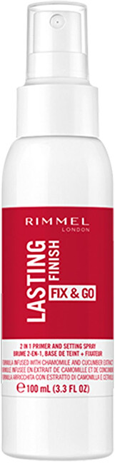 2 v 1 fixačný a podkladový sprej, ktorý zaistí, že make-up vydrží celý deň ako práve nanesený. Vďaka výťažkom z harmančeka a uhorky osviežuje, hydratuje a zároveň zmatňuje pleť. Možno použiť pred aj po nanesení make-upu – ako primer aj ako finálnu fixáciu.