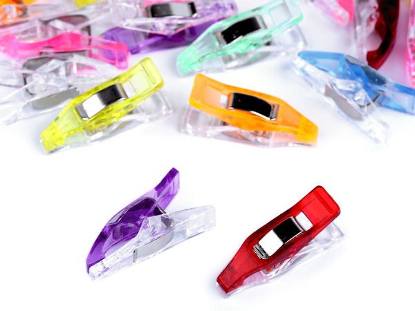 Fixačné štipce môžete použiť namiesto špendlíkov alebo lepidla na spojenie látok. Majú oveľa silnejšie stlačenie než bežné štipce na bielizeň. Sú skvelé nielen na jemné látky, ktoré by špendlíky mohli poškodiť, ale aj na šitie tašiek a peňaženiek, ktoré sú z pevnejších materiálov (koža, koženka) - u kolíčkov nehrozí, že sa vám budú ohýbať ako špendlíky.