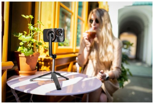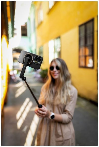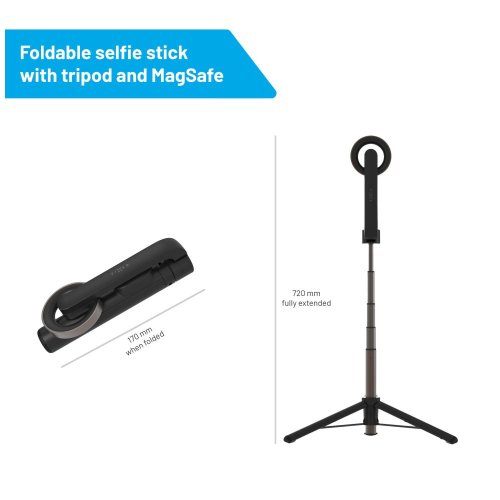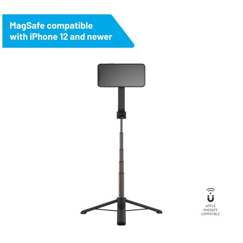 Nastaviteľná dĺžka až 72 cm Možno použiť ako statív Odnímateľná spúšť s dosahom až 10 m Podporované telefóny iPhone 12 a novšie Uchytenie pomocou MagSafe Kompatibilné s MagSafe krytmi