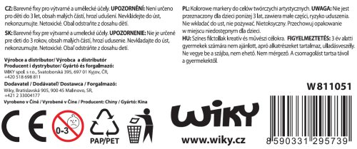 Seznam varování týkajících se bezpečnosti tužek, fixů a fixů vychází z požadavků nařízení (EU) 2023/988 o obecné bezpečnosti výrobků (GPSR). * Ujistěte se, že je výrobek určen pro příslušnou věkovou skupinu, abyste předešli možným rizikům spojeným s nevhodným používáním. * Zajistěte dostatečnou ventilaci během používání výrobku, abyste zabránili vdechování výparů rozpouštědel. * Vyhněte se kontaktu přípravku s pokožkou a očima. V případě kontaktu důkladně omyjte vodou. * Výrobek uchovávejte mimo dosah dětí, aby se zabránilo náhodnému spolknutí nebo vdechnutí. * Používejte výrobek podle zamýšleného účelu, abyste se vyhnuli možným rizikům spojeným s nevhodným používáním. * Nepoužívejte výrobek v blízkosti otevřeného ohně nebo zdrojů tepla, abyste zabránili vzniku požáru. * Ujistěte se, že je výrobek řádně označen v souladu s platnými předpisy. * Zkontrolujte, zda má výrobek certifikáty bezpečnosti, jako je CE, abyste se ujistili, že splňuje bezpečnostní normy. * V případě zjištění jakýchkoliv vad nebo poškození výrobku přestaňte výrobek používat. * Postupujte podle pokynů výrobce týkajících se používání, údržby a skladování výrobku. * Informujte děti o zásadách bezpečného používání výrobku. * Při používání výrobku dohlížejte na děti. * Zajistěte vhodné podmínky skladování produktu, abyste zachovali jeho vlastnosti a vyhnuli se potenciálním rizikům. * Vyhněte se míchání různých typů tužek, fixů a fixů, abyste se vyhnuli nežádoucím chemickým reakcím. * Nenechávejte tužky, fixy a fixy otevřené bez dozoru, abyste zabránili vysušení a možným rizikům spojeným s nevhodným používáním. * Pamatujte, že některé fixy, popisovače a fixy mohou obsahovat látky škodlivé pro životní prostředí. Dodržujte pravidla recyklace a likvidace. * Zajistěte při používání výrobku dostatečné osvětlení, abyste předešli únavě zraku. * Vyhněte se dlouhodobému vdechování výparů produktu, abyste se vyhnuli možným zdravotním problémům. * Pokud se objeví alergická reakce, okamžitě přestaňte přípravek používat a poraďte se s lékařem.