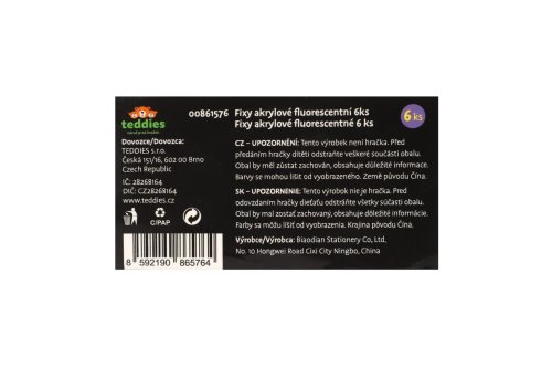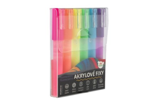 Akrylové fixy Vám pomôžu podporiť Vašu predstavivosť, kreativitu a prenesú všetky Vaše nápady na rôzne materiály. Fixy vhodné na papier, drevo, kamene, sklo, plast a keramiku. Balenie obsahuje 6 ks fluorescenčných fixiek. Pred použitím, pretrepte. Nie je hračka.