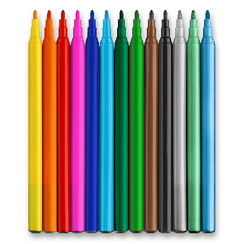 10 ks fixiek v štandardných farbách, * 3 ks fixiek v metalických farbách so žiarivým efektom, * ideálny na kreslenie na papier, kartón, drevo atď., * sada samolepiek s motívom dinosaura, * ventilačné viečko, * intenzívne farby, * vyprateľné z väčšiny bežných textílií pri 3