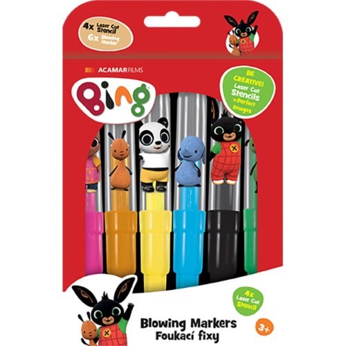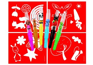 Balenie obsahuje 6 farebných fúkacích fixiek s potlačou a 4 farebné papierové šablónky v obľúbených rozprávkových motívoch. Rozmer krabičky: 12 x 19 cm Vhodné od 3 rokov