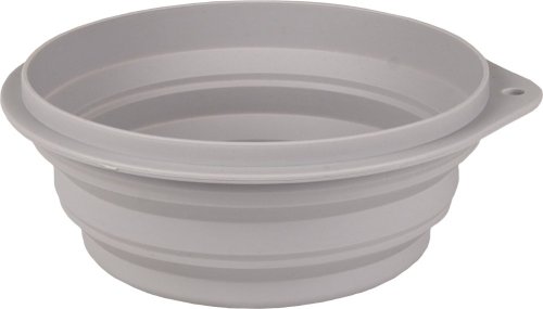 Flamingo cestovná miska je skladacia, silikónová miska, ktorú jednoducho zbalíte do batohu na akýkoľvek výlet s Vaším psíkom. Máte tak istotu, že kedykoľvek bude treba, misku jednoducho rozbalíte, nalejete do nej vodu a Váš psík uhasí smäd. Farba šedá. Objem 1000 ml.