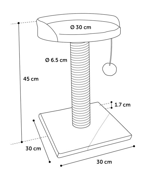Doprajte svojej mačke útulné miesto na leňošenie, odpočinok a možnosti precvičiť si pazúriky. Stĺpik s priemerom je 6,5 cm je omotaný jutovým lanom s hrúbkou 4 mm. Tu si Vaša mačka môže brúsiť pazúriky podľa ľubovôle. Navyše je tu hracia loptička na povrázku a lákavý, mäkký, plyšový trón na driemanie. Všetko ladené do príjemných šedo-béžových odtieňov.