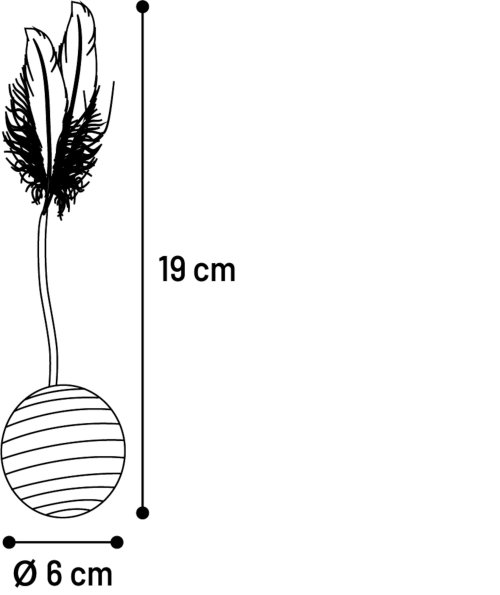 Jutová loptička s pierkami Frits je stvorená priamo pre Vašu mačku! Je vyrobený z plastu a jutového lana s hrúbkou 2,5 mm. Zaujme chrastivým zvukom a pierkami pre extra zábavu.