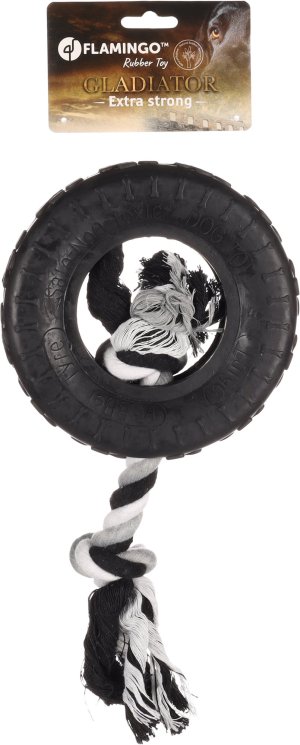 Zábavná hračka z prírodného kaučuku doplnená o bavlnené lano pre extra zábavu.