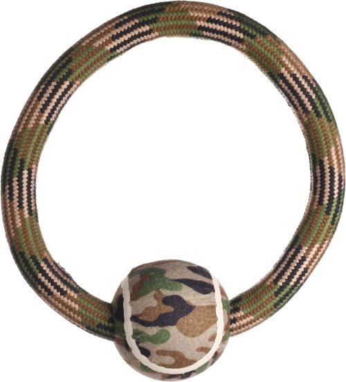 Toto šikovné bavlnené lano s tenisovou loptičkou je pre Vášho štvornohého priateľa vstupenkou na hodiny zábavy! Hračka je vyrobená z odolnej bavlny a tenisovej loptičky, všetko s maskáčovou potlačou.