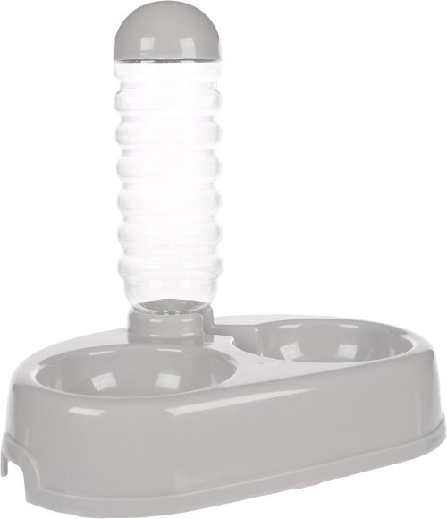 Praktická dvojmiska na jedlo aj vodu, kedy do jednej misky automaticky prúdi voda zo zásobníka a z druhej Váš psík alebo mačka baští nejakú dobrotu.
